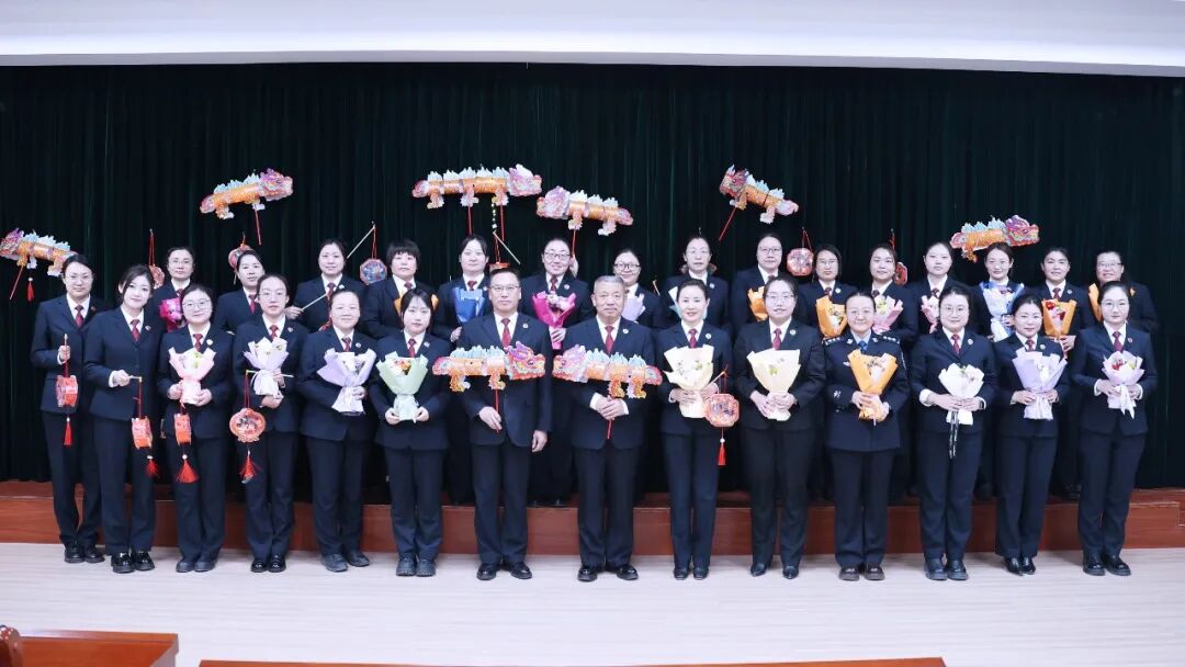 党组书记、检察长王镭带领班子成员手持鲜花,来到大家面前。“节日快乐!”伴随着一声声真挚的问候,芬芳的鲜花被送到每一个人手中,现场瞬间被花香与笑意填满。随后,王镭代表院党组送上了一份温暖的节日寄语。他高度赞扬了全体女检察人员在过去一年里,以“巾帼不让须眉”的昂扬斗志,在检察履职、服务大局、司法为民等各项工作中撑起了“半边天”。他祝愿大家在未来的日子里,既能在岗位上履职尽责,也能心怀暖阳对待生活,在坚守中绽放,在热爱里发光。