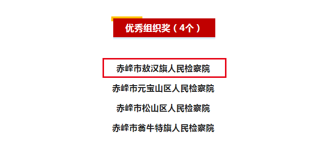 敖汉旗检察院荣获“优秀组织奖”,
